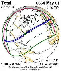 | 31 | 41 | 1 mei 664 | 16:59:46 | T | 1.0501 | 41 N | 73 W | 62 | 187 | 3m 50s |