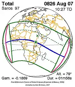 | Kortste totale zonsverduistering | 7 Augustus 826 | 1m 56s | - |