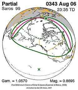 | 13 | 26 | 10 okt. 451 | 20:26:50 | A | 0.9551 | 42 N | 86 W | 38 | 262 | 4m 24s |