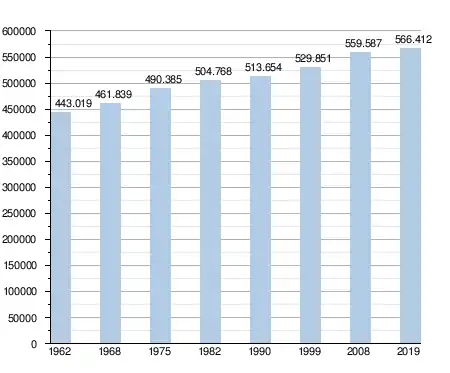 Bron: Recensement Populaire INSEE - 1962 tot 1999 population sans doubles comptes, nadien Population Municipale
