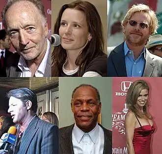 met de klok mee: Tobin Bell, Shawnee Smith, Cary Elwes, Betsy Russell, Danny Glover en Costas Mandylor.