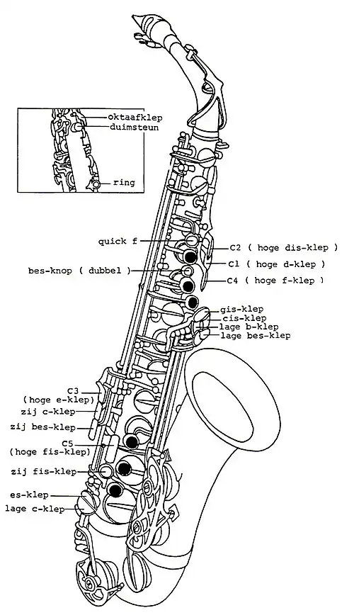 De kleppen op een altsaxofoon