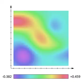 Het scalaire veld kan worden gevisualiseerd als een -dimensionale ruimte, waar aan elk punt in deze ruimte een reëel of complex getal is gekoppeld.