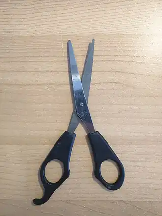 - kappersschaar, met zeer strak over elkaar glijdende messen zodat het kleinste en flexibelste haartje kan worden afgeknipt.