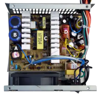 - Goedkope voedingen hebben vaak een korte levensduur, doordat de toegepaste elco's zeer zwaar belast worden, vooral bij flybackconverters (secundaire afvlakking). Dit leidt tot vroege uitval, maar kan gemakkelijk gerepareerd worden, vooropgesteld dat men aan het juiste type condensator kan komen. Ook in flybacktrafo's kunnen hotspots ontstaan door wervelstromen in de wikkeling, die boven de luchtspleet in het middenbeen van de trafo ligt. Dit leidt op termijn tot windingsluiting in de primaire wikkeling. Als de schakeltransistor dit overleeft, is voor reparatie een nieuwe trafo nodig. Goedkope voedingen gebruiken vaak zeer sterke, geforceerde koeling met een ventilator, en hebben vaak maar een matig rendement van bijvoorbeeld 70%, tegen 90% voor een passief gekoelde voeding. Naast het hinderlijke geluid dat een ventilator maakt, is ook de levensduur van een goedkope ventilator beperkt tot bijvoorbeeld 10 000 uur.