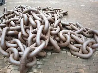 - ↑ Normalisatie Instituut, NEN (1 december 1998). Kortschalmige kettingen voor hijsdoeleinden - Veiligheid - Deel 2: Kettingen met middelmatige tolerantie voor kettingsamenstellen - Kwaliteitsklasse 8. NEN-EN 818-2 1998