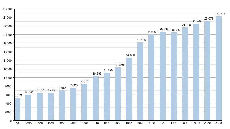 Alle historische gegevens hebben betrekking op de huidige gemeente, inclusief deelgemeenten, zoals ontstaan na de fusie van 1 januari 1977.