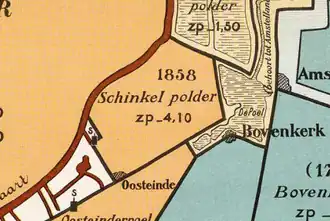 De Zwarte- of Schinkelpolder had oorspronkelijk een zwart geteerde wipmolen bij de oever van de Haarlemmermeer, ter hoogte van waar nu de Bosrandbrug ligt. In 1778 werd deze vervangen door de nog bestaande De Zwarte Ruiter.