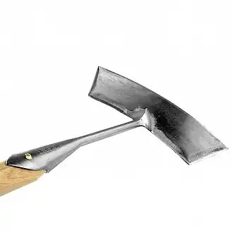 Voor het verwijderen van onkruid kan ook een hak worden gebruikt. Net als bij de schoffel wordt het onkruid hierbij vlak onder de grond afgesneden.