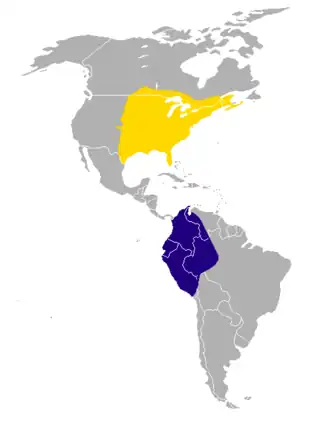 Deze trekvogel komt voor ten oosten van Noord-Amerika en het noordwesten van Zuid-Amerika. Broedt in Oost-Canada en de VS, maar overwintert tot in Noordoost-Peru.