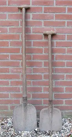 - Een spade is een schop om de grond mee om te spitten