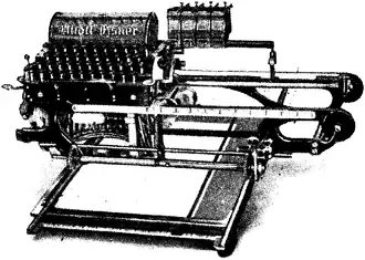 - machines met een voor-aanslag en typearmen tot 1898, bijvoorbeeld de Daugerty;
