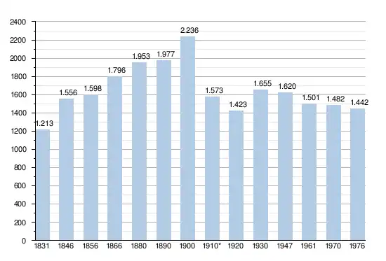 - Bronnen:NIS, Opm:1831 tot en met 1970=volkstellingen, 1976= inwoneraantal op 31 december