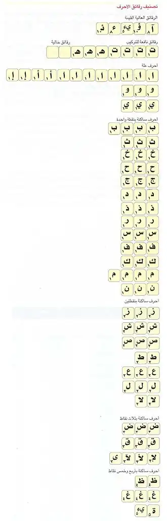 | Arabisch | 35 | 104 | 257 | 2,47 | 10 (ﺍ) | 1 | 4 | 14 | 6 | 3 | 2 | 1 | 3 | |||