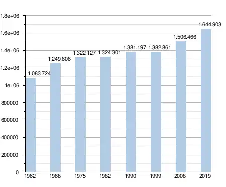 Bron: Recensement Populaire INSEE - 1962 tot 1999 population sans doubles comptes, nadien Population Municipale