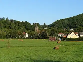 Door Servance loopt de Ognon, die zich aan de ingang van het dorp naar beneden stort in een 14 m hoge waterval, Le saut de l'Ognon.