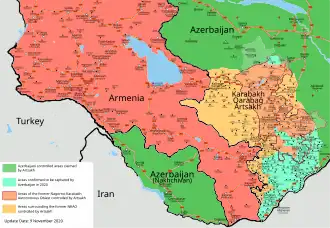 - ↑ (en) Agdam District passes under Azerbaijan's control. Caucasian Knot (20 november 2020). Geraadpleegd op 4 januari 2024.