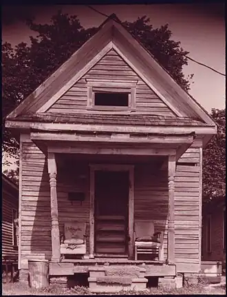 - ↑ Two 3-room houses near the railroad yards at Simpson st. crossing, rent $12 a month to good tenants who pay in advance; price $1,200 on terms or $100 cash, balance $15 a month; a combination of investment and savings bank: these are not shacks, but good shot-gun houses in good repair.