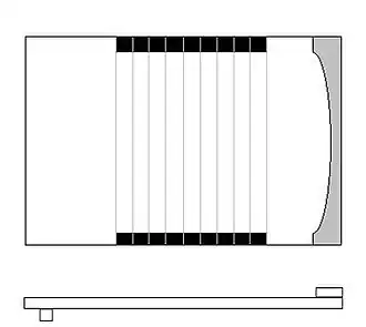 Het spelbord is een platte, gladde plank met aan één kant (het einde van het speelvlak) een halfronde verhoging, waar de muntstukken door worden teruggekaatst. Op het bord staan lijnen van links naar rechts op een afstand van ongeveer een anderhalve halfpennystuk van elkaar. Daardoor zijn er negen stroken tussen die lijnen te zien. Aan de onderkant van het bord is een lat vast gemaakt, waarmee het spelbord op z'n plaats wordt gehouden bij het slaan van de munten.