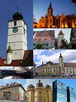 In het historische centrum worden de huizen gesierd met vele kleine dakkapellen, de zgn. ogen van Sibiu. Maar ook de gotische en Weens-barokke huizen vragen de aandacht van de toeristen in de binnenstad van het voormalig Duitse Hermannstadt. Behalve in enkele grote Roemeense kerken uit het einde van de 19de en het begin van de 20ste eeuw is van Roemeense architectuur niets te bespeuren. Een duidelijk voorbeeld van de middeleeuwse Duitse invloed is de Duits-evangelische 'Lutherse Kerk', de gotische hoofdkerk met een rijk ingangsportaal en een monumentaal orgel uit 1674. In deze kerk is de grafsteen van de zoon van Vlad Dracula te vinden. Van barokke Oostenrijks-Habsburgse architectuur getuigt de 18de-eeuwse rooms-katholieke kathedraal, gebouwd na de wederinlijving van Transsylvanië als symbool voor de macht van Wenen.