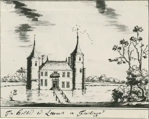Borg Holwinde met het wapen van de familie Sickinghe (ook getekend boven de hoofdingang) en de familie Herema