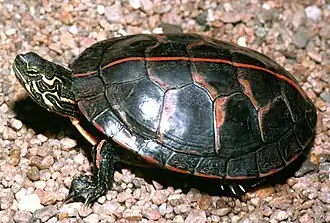 | De zuidelijke sierschildpad (Chrysemys dorsalis) is te herkennen aan de oranje streep op het midden van het schild. | |||||||||||||||