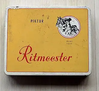 Het merk Ritmeester vindt zijn oorsprong in de leverantie van sigaren aan het regiment van de cavalerie te Ede. Op het bandje was een cavaleriepaard afgebeeld met de naam 'Peter', en zo heette ook de sigaar. De Duitsers, aan wie de sigaar eveneens geleverd werd, wilden in 1915 naast het paard ook een officier afgebeeld zien, en zo werd het merk Ritmeester geboren. De Duitse officier werd weldra door een neutraler figuur vervangen, waarvoor Ritmeester Buat model heeft gestaan.