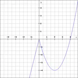 {\displaystyle f(x)={\begin{cases}4x&{\mbox{als }}x<0\\(x-2)^{2}-4&{\mbox{als }}x>0\end{cases}}}