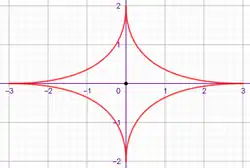 {\displaystyle \quad {\begin{cases}\left|x\right|=3\cos ^{4}(t)\\\left|y\right|=2\sin ^{4}(t)\end{cases}}}