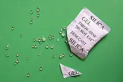 Silicagel zijn vaste, vochtabsorberende kristallen van een silicaat, synthetisch gemaakt uit natriumsilicaat ().