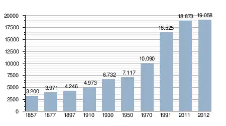 - Bron: INE; 1857-2011: volkstellingen