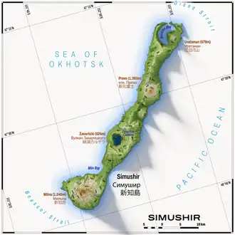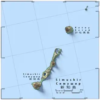 - ↑ a b (en) Ostrov Simushir, Russia Travel Weather Averages (Weatherbase). Weatherbase. Geraadpleegd op 7 augustus 2022.