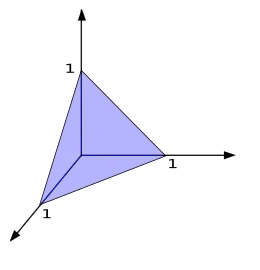Een meer symmetrische vorm ontstaat als het simplex met de eenheidsvectoren als hoekpunten. Dit simplex wordt het standaard -simplex genoemd en is de deelverzameling van gegeven door