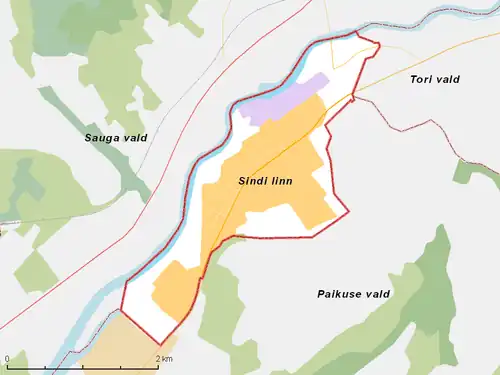 - ↑ (et) Marja Kallasmaa, Sindi. Dictionary of Estonian Place names. Gearchiveerd op 18 september 2019. Geraadpleegd op 14 augustus 2023.