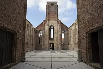 Het betrof een driebeukige bakstenen kerk met ingebouwde toren en een neogotisch interieur.