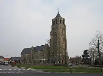 Vanaf ongeveer 1100 was er sprake van een romaans kerkgebouw. De parochie was in bezit van de Abdij Sint-Jan-ten-Berg te Terwaan, terwijl ook de Sint-Bertinusabdij te Sint-Omaars er bepaalde rechten had. In de 2e helft van de 12e eeuw werd het koor van de kerk uitgebreid, en in het 2e kwart van de 13e eeuw werd een westtoren aangebouwd, terwijl einde 13e eeuw een gotisch koor werd aangebracht.