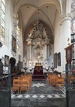 Het barokke altaarstuk werd oorspronkelijk gemaakt voor de Sint-Bernardusabdij in Hemiksem. Tijdens de Franse Revolutie werd de abdij echter opgeheven, waarna het altaar in 1805 door het revolutionair bewind werd opgekocht. Om in het koor van de nieuwe bestemming te passen, werden er enkele aanpassingen gemaakt aan het stuk. Zo werden de zijportieken van het altaar naar voren gebracht en zijn de oorspronkelijke engelen die afgebeeld werden, vervangen door kleinere engelen.