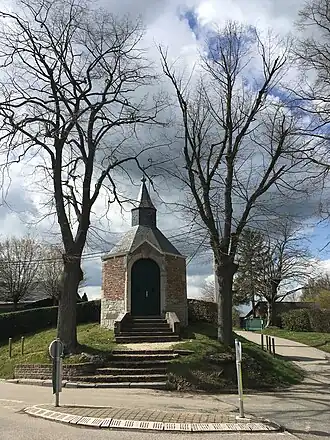 De achthoekige kapel is "herbouwd door de Limburgers in 1774", zoals de gevelsteen vermeld, op de plaats waar een eerdere kapel had gestaand, die tussen 1560 en 1566 gebouwd was. Oorspronkelijk was de kapel omringd door zes lindebomen, daar zijn er nog twee van over. Op de trappen staat dat de vier trappen in 1774 geschonken zijn door I. N. Piette. De kapel heeft een tentdak met dakruiter. Boven het 18e-eeuwse altaar in Lodewijk XVI-stijl hangt een schilderij met een medaillon met de heilige Anna, omringd door cherubijnen.