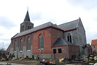 Van de vroege geschiedenis van de kerk is weinig bekend, maar vermoedelijk was er in de 11e of 12e eeuw al een kleine zaalkerk. In de 13e of 14e eeuw werd een vierkante oosttoren gebouwd. In de 15e eeuw werd een koor en een sacristie toegevoegd. In 1615 stortte de kerk in en vanaf 1620 werd deze weer herbouwd. In 1625 werd een transept gebouwd en omstreeks 1664 kwam een westelijke travee en een westtoren tot stand. De naaldspits werd in 1782 opgericht en in 1783 werd een zuidbeuk en een doopkapel gebouwd naar ontwerp van Frans Drieghe.