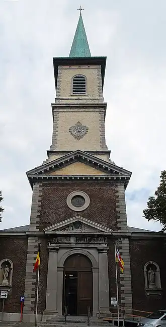 De Sint-Catharinakerk is een neoclassicistische, basilicale kerk met een driebeukig schip van acht traveeën en een koor met een halfronde afsluiting. Ze werd in baksteen opgetrokken op een plint van Naamse steen. De westfaçade heeft een risaliet met hardstenen hoekbanden over de breedte van de middenbeuk, die bekroond wordt met een driehoekig fronton. Aan weerszijden van het risaliet bevinden zich rondboognissen, waarin in 1913 beelden van de apostelen Petrus en Paulus zijn geplaatst. De 76 m hoge kerktoren, die uit de westfaçade oprijst, kreeg in 1948 een opvallende, groenkoperen torenspits als bekroning. De sacristie aan de noordzijde is van later datum.