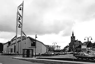 Jaren later, in 1993, werd een nieuw kerkgebouw opgetrokken in de stijl van het naoorlogs modernisme en veel kleiner en functioneler dan de voorganger. Deze kerk werd ontworpen door de architecten Pluymers en Serneel. Het is een zaalkerk op een zeshoekige plattegrond. In een losstaande open klokkentoren van gegalvaniseerd staal hangen een drietal klokken. Bavo Tiebos ontwierp de glas-in-loodramen.