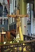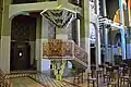 Het kerkmeubilair werd grotendeels door Dom Bellot ontworpen. Er is een Mariakapel achter het koor, en er zijn kapellen in het transept die gewijd zijn aan respectievelijk Sint-Petrus en Sint-Chrysolius.