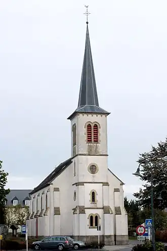 Het witte kerkgebouw bestaat uit een westtoren met vier geledingen ingesnoerde torenspits, een schip met vier traveeën en koor van een travee en driezijdige koorsluiting. Het schip wordt gedekt door een zadeldak en het koor door een lager gelegen zadeldak. Zowel de toren, schip als koor zijn voorzien van steunberen.