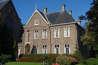Ook de in 1877 gebouwde pastorie naast de kerk is van de hand van Bleijs.