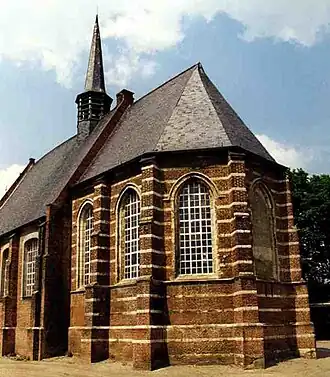 Het betreft een georiƫnteerd bakstenen zaalkerkje. De westgevel is een tuitgevel met vlechtingen. Het koor is iets smaller en het is driezijdig afgesloten. Het is van baksteen met zandstenen speklagen. De muurfragmenten van ijzerzandsteen wijzen op een romaanse voorganger. Op het dak bevindt zich een achtkante dakruiter. Op het koorgewelf werden schaduwschilderingen aangetroffen.