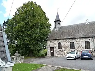 De kerk is gewijd aan Hadelinus van Celles. De oorspronkelijke kerk werd door een orkaan verwoest en in 1672 herbouwd in zandsteen- en kalksteenblokken. Het eenbeukige gebouw had drie traveeën en in 1830 werden er nog twee traveeën aan toegevoegd, en ook een driezijdig gesloten koor. Er is een met leien bedekte achtkante dakruiter met achtkante spits. Boven de zuidelijke ingang bevindt zich een gevelsteentje met het jaartal 1676.