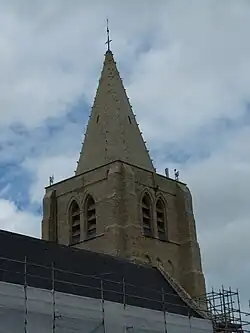 Het betreft een driebeukige bakstenen hallenkerk, welke in 1693 gebouwd werd en in 1759 vergroot. Er is een 16e eeuws beeld van de gegeselde Christus. Het deksel van het doopvont toont in beeldhouwwerk de doop van Christus door Johannes de Doper in de Jordaan. De kruiswegstaties hebben nog Vlaamse opschriften.