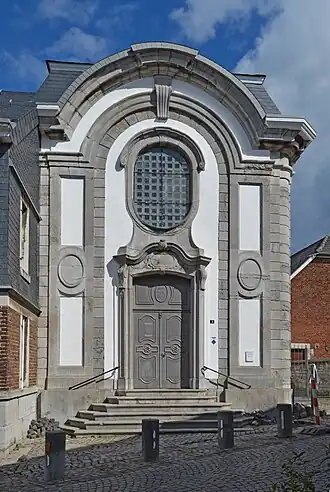Het betreft een eenbeukig kerkgebouw op een rechthoekige plattegrond met afgeronde hoeken, en een klein koor met halfronde apsis. De voorgevel is uitgevoerd in blauwe hardsteen en in de kleuren wit en grijs beschilderd. Boven het fraai versierde ingangsportaal bevindt zich een groot ovalen oeil de boeuf, waarachter zich de orgeltribune bevindt. De omlijstingen van deur en venster vormen een eenheid, waarboven zich een halfcirkelvormige boog bevindt, waardoor de gehele voorgevel eveneens oogt als een groot portaal. Op het dak, boven het koor, bevindt zich een achthoekig klokkentorentje met uivormige spits.