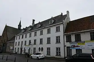 Het 13de-eeuwse bakstenen hoofdgebouw telt twee verdiepingen en heeft een puntgevel op de straatzijde gericht. De dakruiter is 17de-eeuws. Een nis boven de ingang is in barokstijl en bevat een 18de-eeuws beeld van Sint-Augustinus. In dit hoofdgebouw bevindt zich de grote ziekenzaal.