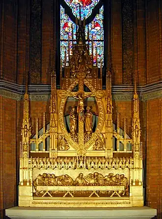 - Boven het Avondmaal bevindt zich een kruisigingsgroep omgeven van een mandorla; het betreft een kopie van de beroemde houtsnijder Tilman Riemenschneider.